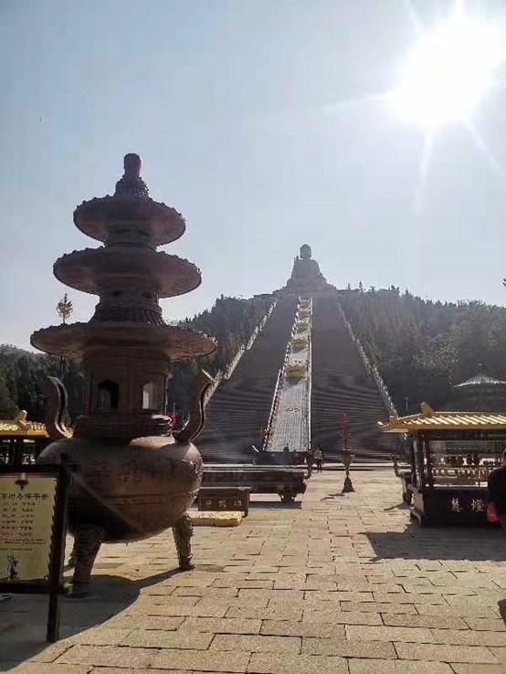 02 坐標(biāo)二:蓬萊.蓬萊閣 資料介紹:蓬萊閣虎踞丹崖、云擁浪托,蓬萊閣始建于北宋嘉佑6年(公元1061年),與黃鶴樓、岳陽樓、滕王閣并稱為"中國四大名樓"。主閣一樓長14.8米,進深9.65米,四面回廊,明柱16根。 “蓬萊閣二樓長度為13.75米,進深8.55米,四面繞以回廊,木柵格扶欄,東、西、北三面木屏風(fēng),北側(cè)開窗,供游人憑欄觀海。 南門外額書“碧海春融”,內(nèi)額書“神州勝景”。 閣外北側(cè)正中懸掛清代書法名家鐵保手書的“蓬萊閣”匾額,字體雄健渾厚,歷經(jīng)浩劫得以幸免,十分珍貴。 “人間蓬萊”留個影,我等都是仙境人。 資料介紹:南山大佛 (釋迦牟尼)--世界第一錫青銅鑄大坐佛。南山大佛位于山東省煙臺市龍口市 南山旅游區(qū)的南山大佛,高38.66米,重380噸,選材錫青銅鑄造,由232件佛體、108塊蓮花瓣、302個發(fā)髻、共642塊錫青銅鑄件組合而成這座舉世罕見的錫青銅釋迦牟尼大坐佛,堪稱目前世界第一銅鑄大坐佛。 大佛坐落在南山山頂上。他的雙目垂視,不論你什么角度,他的眼神都在向你張望,隨著人的靠近或遠(yuǎn)離,眼睛仿佛在微微開合,靠得越近就越覺得佛祖在關(guān)切您一樣。 居高向下望去,南山的景色盡收眼底:東面和北面群山隱隱,蒼松青翠,往南看,山嶺之后,漂亮的村莊,豪華的酒店,綠油油的高爾夫球場,是紅塵煙火。大佛后面的山上,刻有“?!薄皦邸倍?,正是:福如東海,壽比南山。